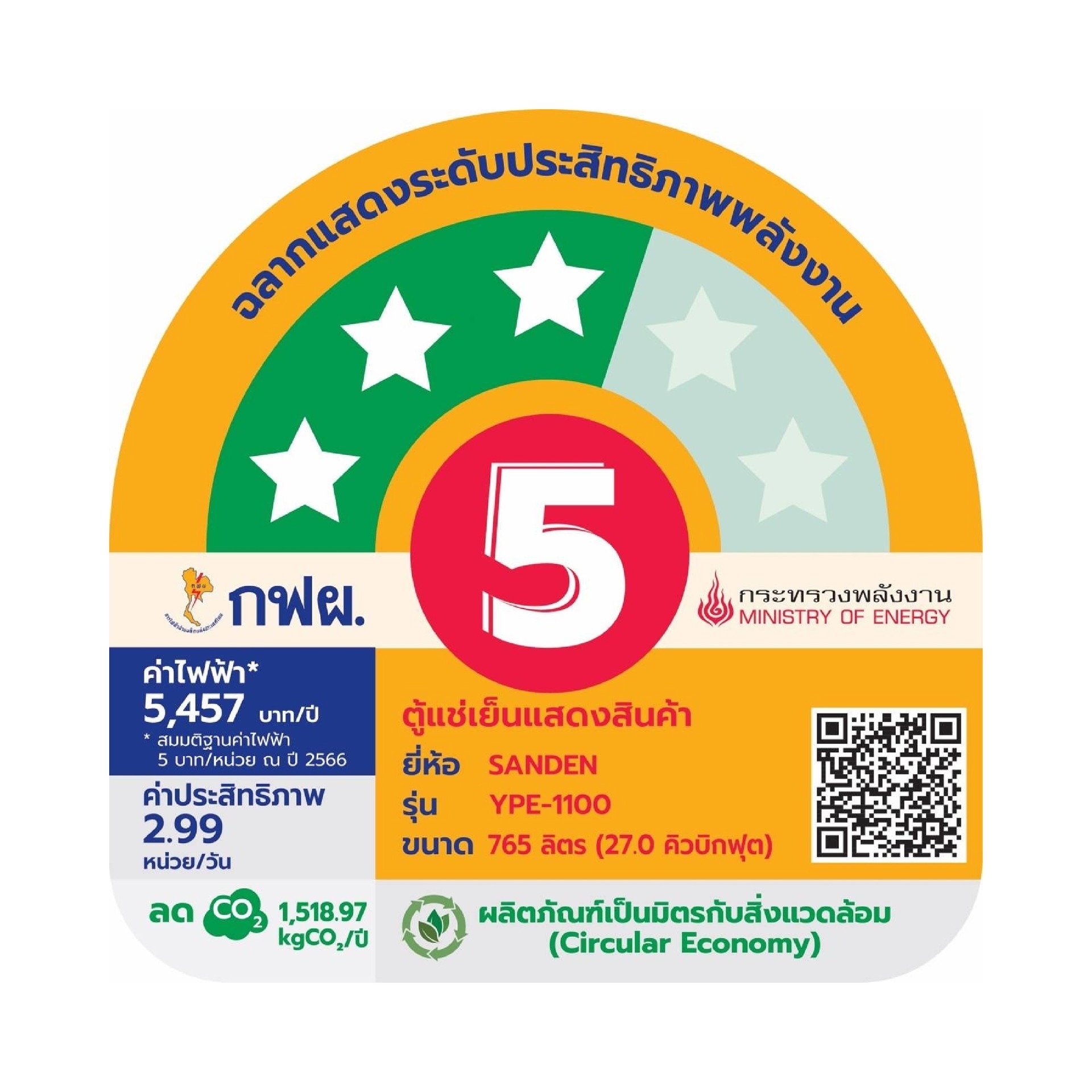 • ฉลากประหยัดไฟเบอร์ 5 ⭐⭐⭐3 ดาว