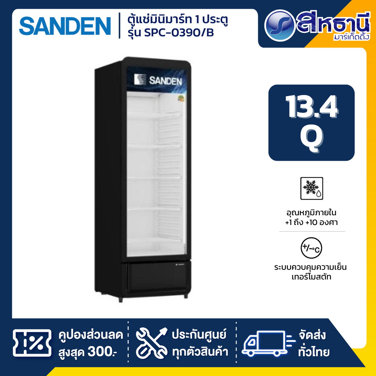 ตู้แช่เย็นมินิมาร์ท 1 ประตู SANDEN รุ่น SPC-0390/B ขนาด 13.4 Q สีดำ