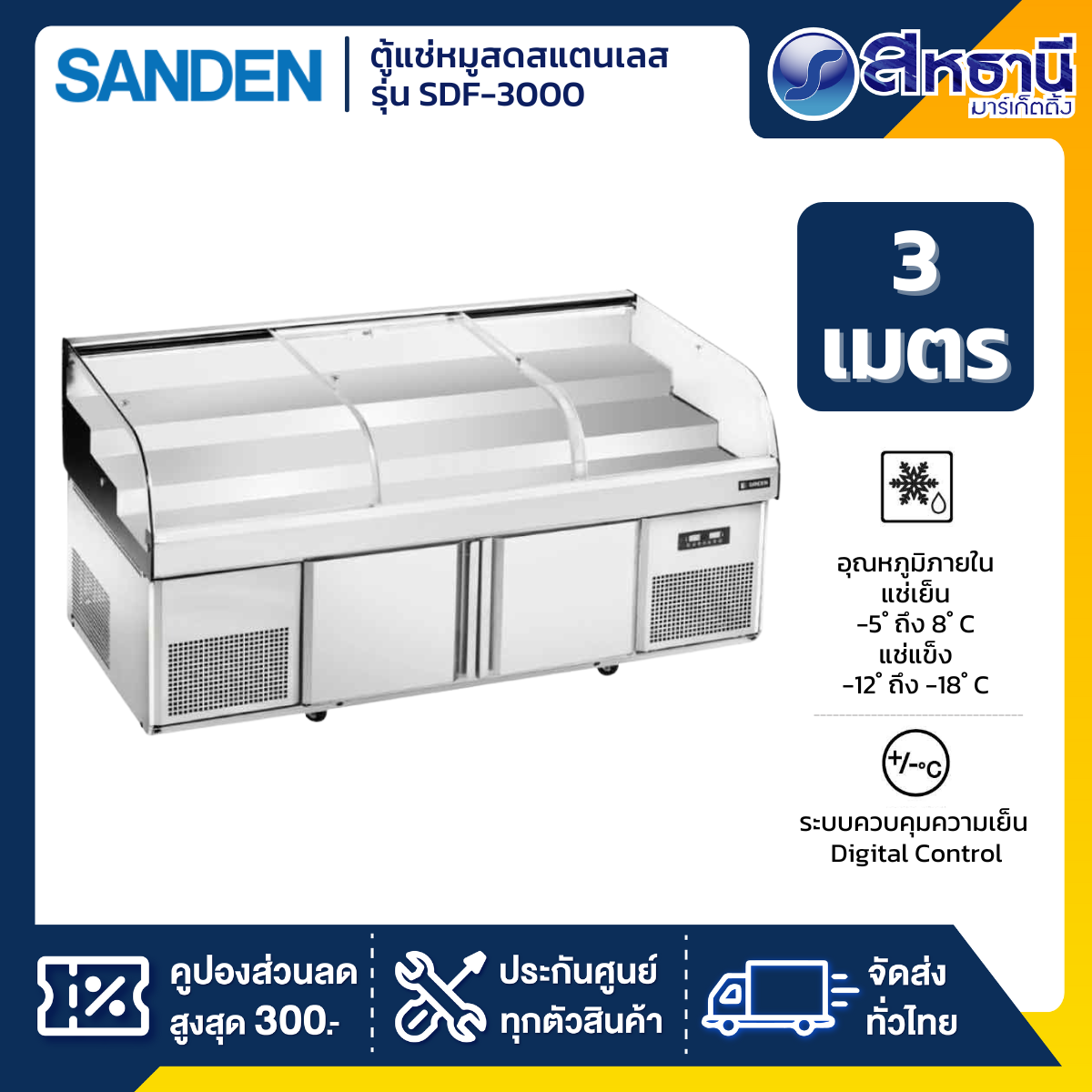 SANDEN ตู้แช่เนื้อสัตว์ ตู้แช่หมูสดสแตนเลส 3 เมตร รุ่น SDF-3000
